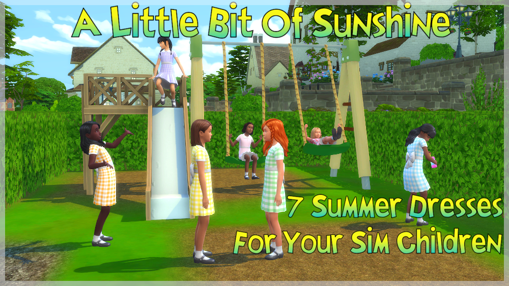 With the release of Cottage Living and the wonderfully British town on Henford-On-Bagley, I began my quest for English style uniforms for my Sim children. After discovering this fabulous set by Onyx Sims, I wanted to find some summer dresses for the girls. Alas, I found nothing so I set about doing it myself!