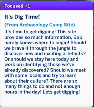 When sims arrive on the lot, they receive the ‘It’s Dig Time’ buff.