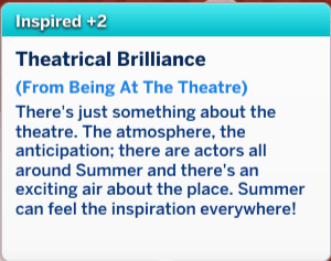 When sims arrive on the lot, they receive the ‘Theatrical Brilliance’ buff.