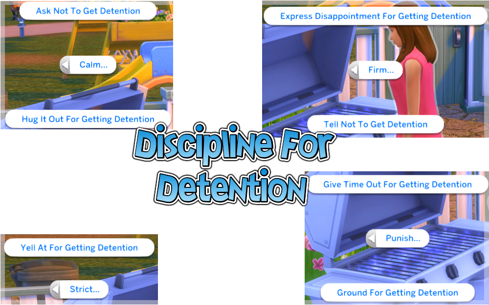 I love working with families and Parenthood and High School Years are two of my favourite packs. However, I was quite disappointed to see that parents couldn’t use the discipline feature from Parenthood when their teens do something from High School Years. So I made this little mod to rectify that.